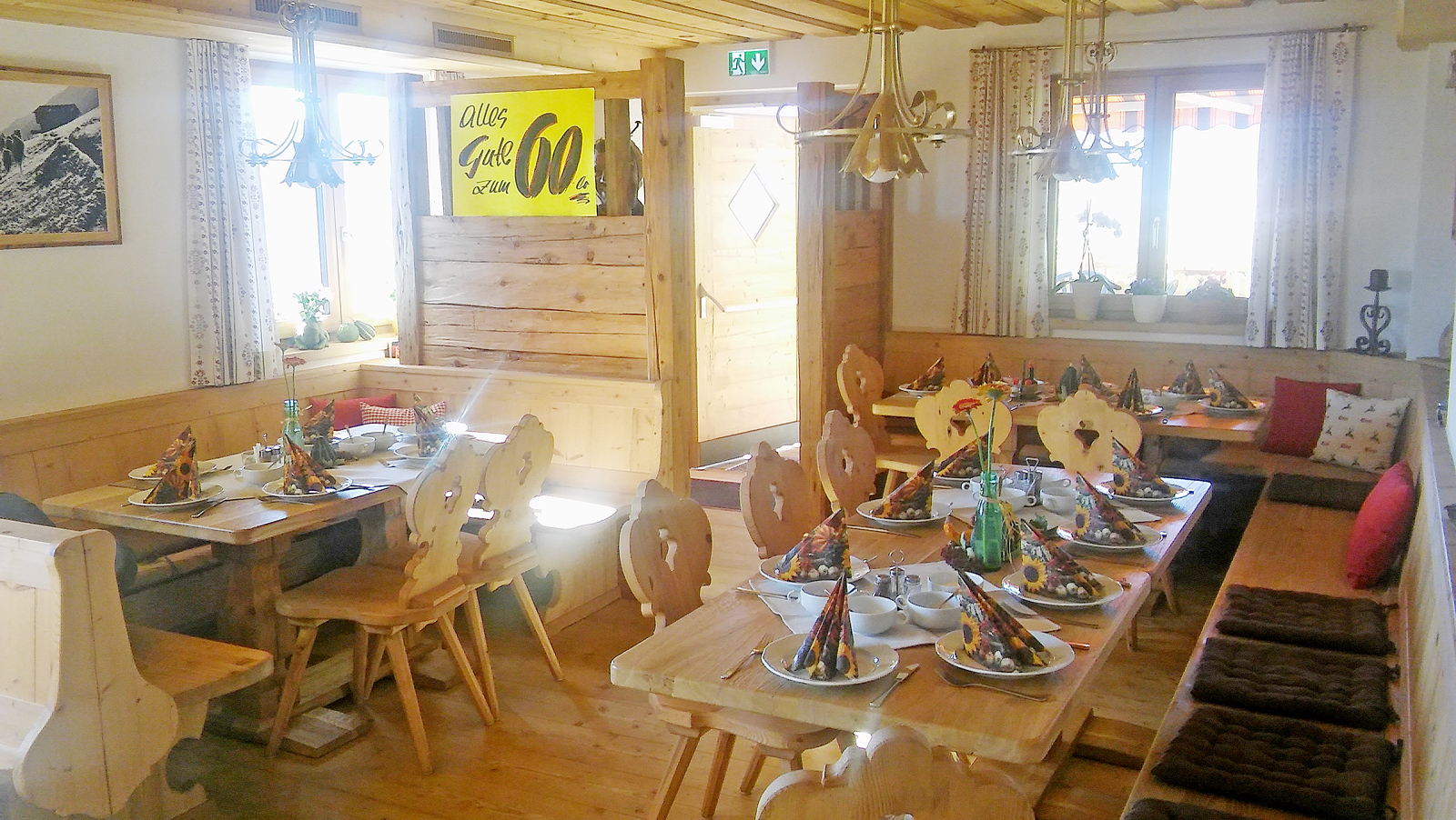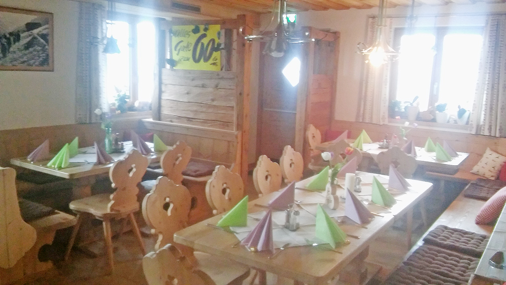 Bei uns können Sie nicht nur Ihren Hunger und Durst stillen, denn die im Tiroler Stil eingerichtete Gaststube lädt auch zum längeren Verweilen ein. Bei schönem Wetter können Sie auf unserer Terrasse die Sonne an der garantiert frischen Luft genießen und den Blick über die Berge oder ins Tal schweifen lassen, während Ihre Kinder den Spielplatz mit Schaukel und vielem mehr erobern.